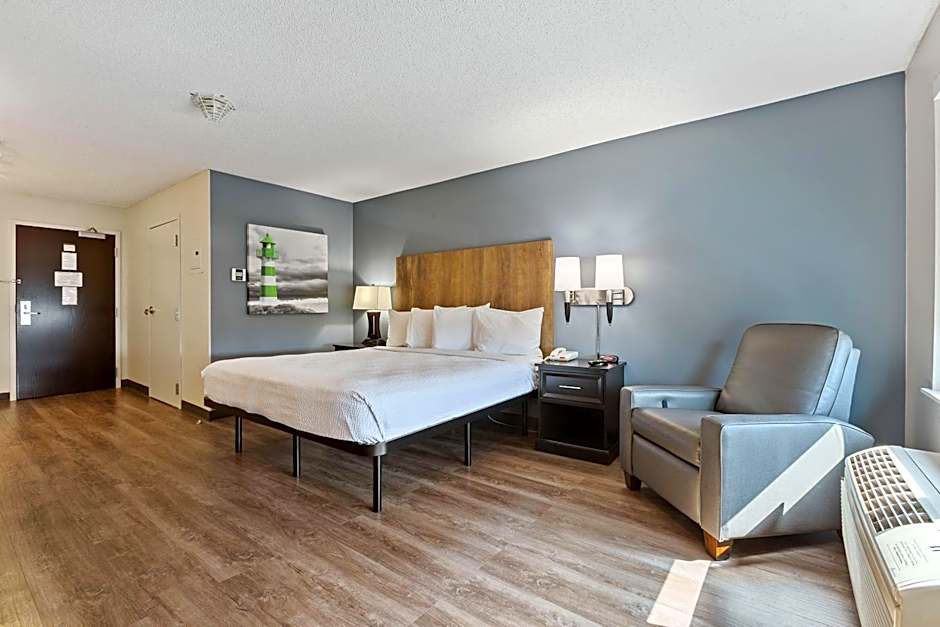 1 King Bed, kitchen, dining and work area, non-smoking